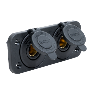 Heavy duty double merit sockets with a twin flush mount bracket. Features a rugged design and dust proof covers. Can be installed with or without the flush mount panel. Suitable for automotive and marine applications. Comes supplied with crimp terminals and fixing screws.