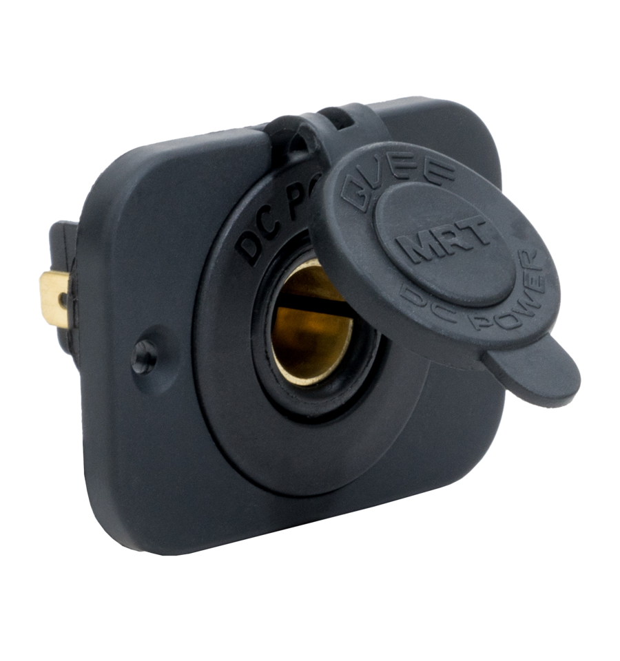 Heavy duty merit style accessory socket with flush mount bracket. Features a rugged design and dust proof cover. Can be installed with or without the mounting panel. Suitable for automotive and marine applications. Comes supplied with crimp terminals and fixing screws.