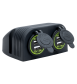 Heavy duty dual USB sockets with a twin surface mount bracket. Features a rugged design and dust proof covers. Can be installed with or without the mountIing bracket. Suitable for automotive and marine applications. Comes supplied with crimp terminals and fixing screws.